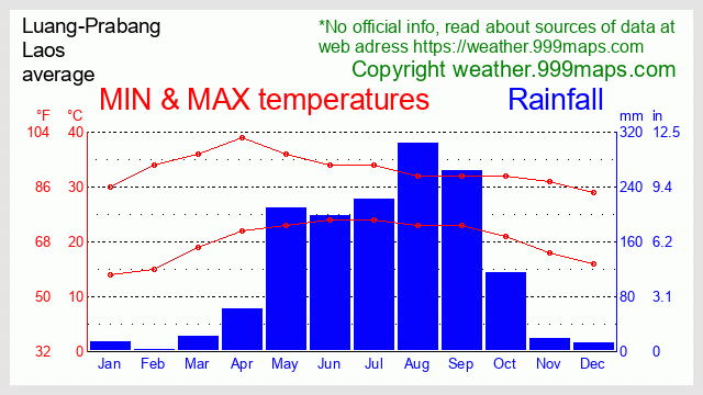 MIN and MAX temperatures Luang-Prabang 999maps